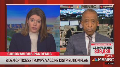 On today's show, substitute host Kasie Hunt and Al Sharpton both fretted that "the Biden administration is being set up to fail" by reason of the high expectations the Trump administration has set regarding vaccine distribution and related matters.