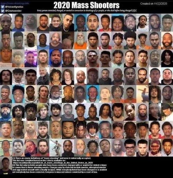 Longer timelines must be considered. Statista reports that between 1982 and March 2021, 54% of mass shooters were white, 17% black, and 8% Latino. Wait a minute — Latinos can be any race. Nevertheless, whites are 73% of the U.S. population, and blacks 12.7%, so whites are very under-represented while blacks are over-represented. See also the series of excellent articles from the Center for Inquiry....