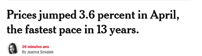Then we have CPI growth (aka, inflation) growing at 4.2% YoY, the highest since 2008 and The Great Recession.