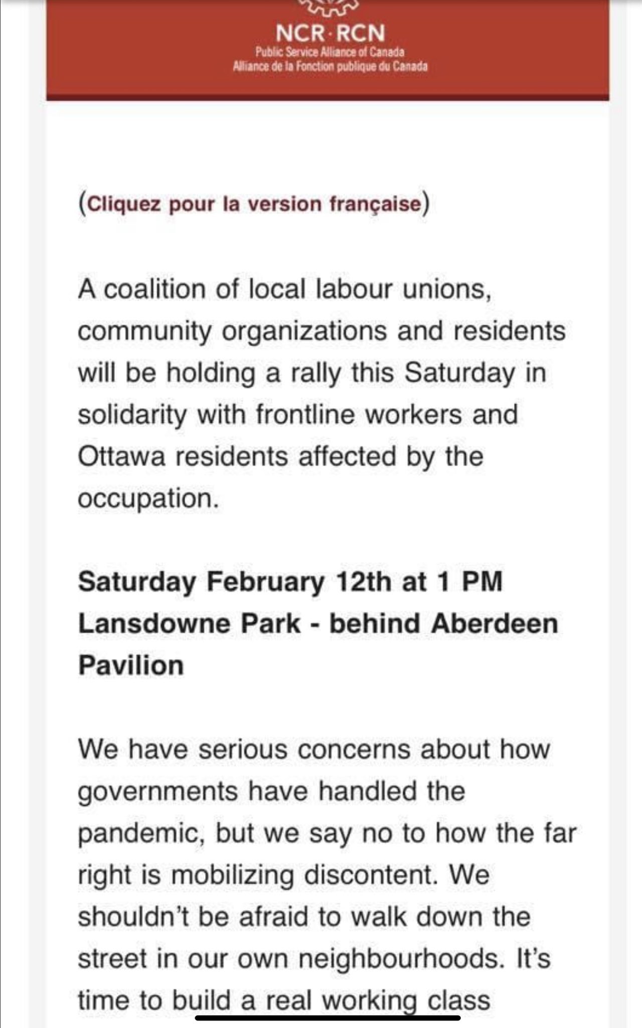 The Trudeau Government was so concerned about the dangerous protests in Ottawa, their union PSAC (Public service alliance of Canada) emailed all their federal union members Friday February 11, to go counter protest in Ottawa. Legacy media… crickets