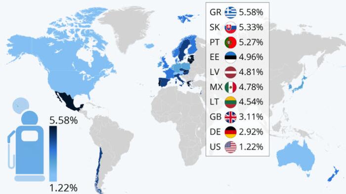 Residents of Greece would have had to pay approximately six percent of their average monthly wage for a full tank of gas this past Monday due to the price hike connected to Russia’s continued invasion of Ukraine. As Statista’s Florian Zandft details below, this is the highest figure among all OECD countries.