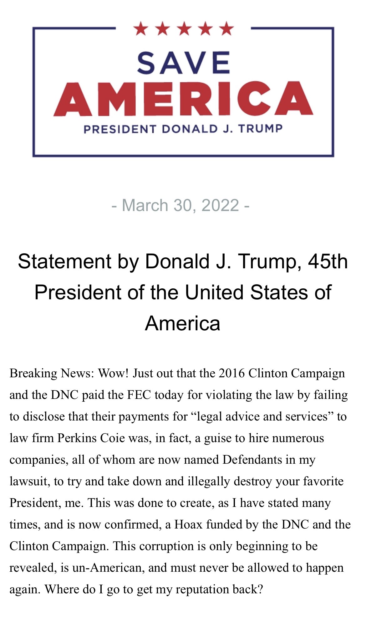 Twitter ^ | March 30th, 2022 | Donald J. Trump