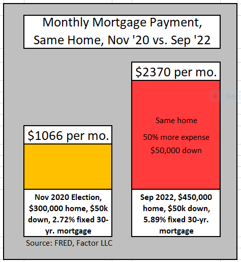 This adds $200,000 in interest payments for a $500,000 house.— Stephen Moore (@StephenMoore) September 14, 2022
