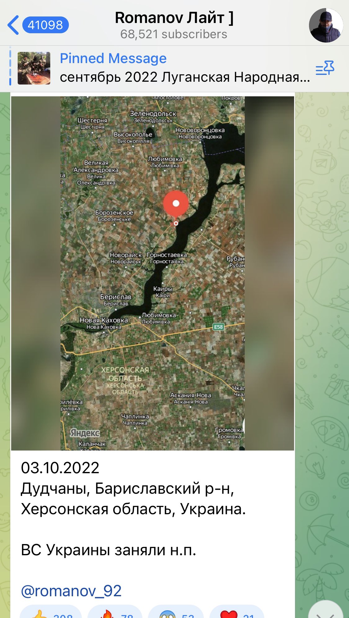 UPDATE: Ukrainian advance to Beryslav/Nova Kakhovka area has been stopped for now by 234th regiment of 76th airborne division that was brought to area near Dudchany. Who controls Dudchany is unclear at the moment.