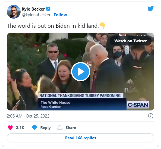 And the reaction of one mom at today's "National Thanksgiving Turkey Pardoning" event at the White House said it all about the sick behavior of the current occupant of that house.