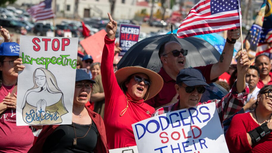 Religious groups gathered to pray ahead of LA Dodgers’ Pride Night hosting an anti-Catholic group.