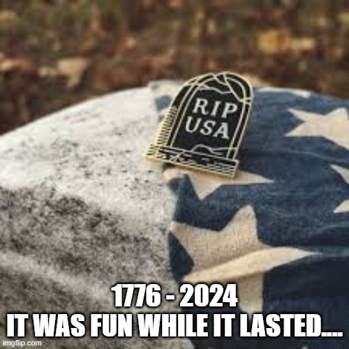 We’re no longer a nation. We’re a loosely federated continental group of states. Our Constitution and Bill of Rights, our laws, our ethics, our borders... all history.