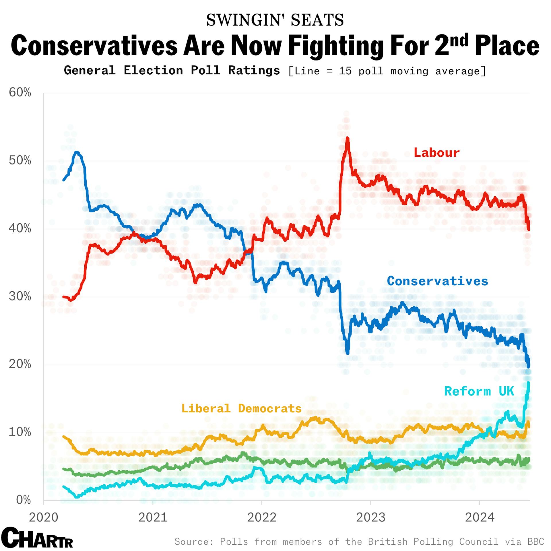 With polls suggesting a 20%+ point lead for Labour, and Reform splitting the right-wing vote, the UK is on the brink of an election which — if some of the most extreme polls are accurate — could be the most one-sided in more than a century.