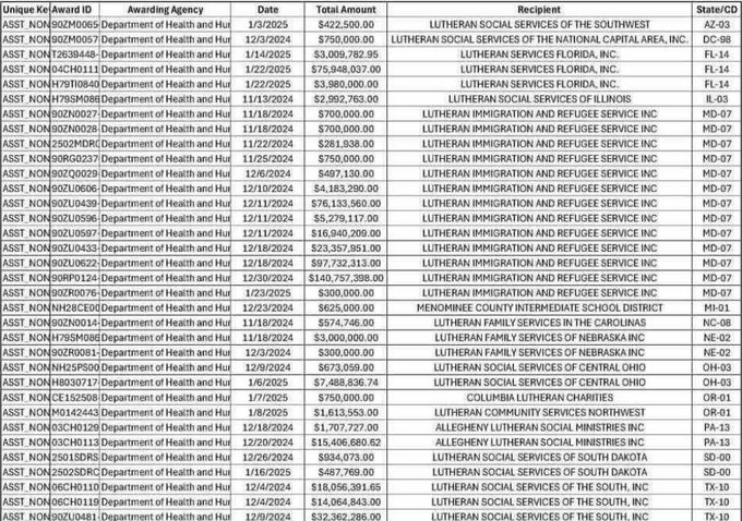 A spreadsheet screen pic of total $$$$ given to a religious NGO to support ‘immigrants’................grand total $628 MILLION..........