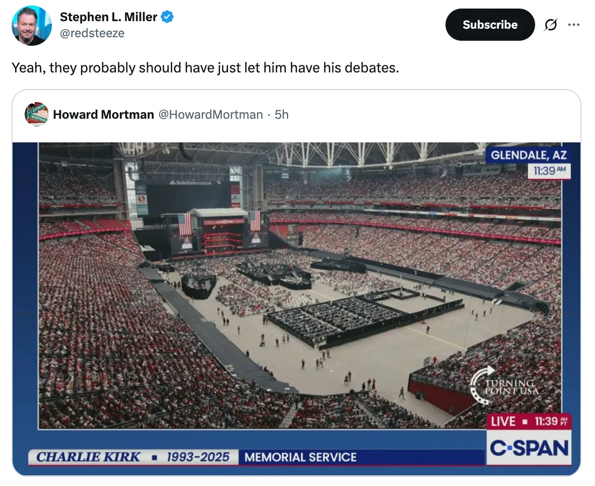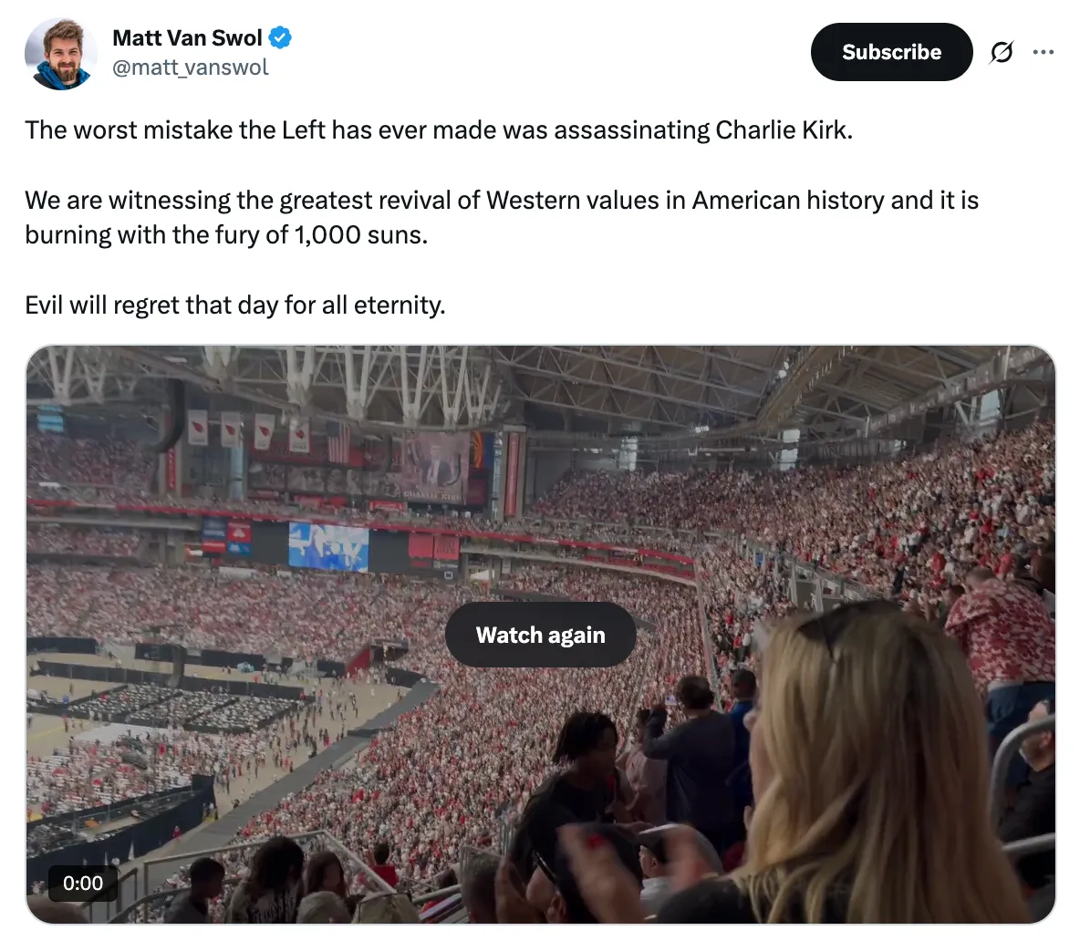 Charlie Kirk was a powerful force. He went from campus to campus and he talked to people. Generally when he was debating, he would put his microphone down, to reassure his partner that he wasn’t going to talk over them. He was respectful, and he was highly effective. He played a major role in winning over Gen Z to the conservative side. That’s why he was killed — murdered. He was murdered not because he was “hateful,” or “extreme,” but because he was effective.