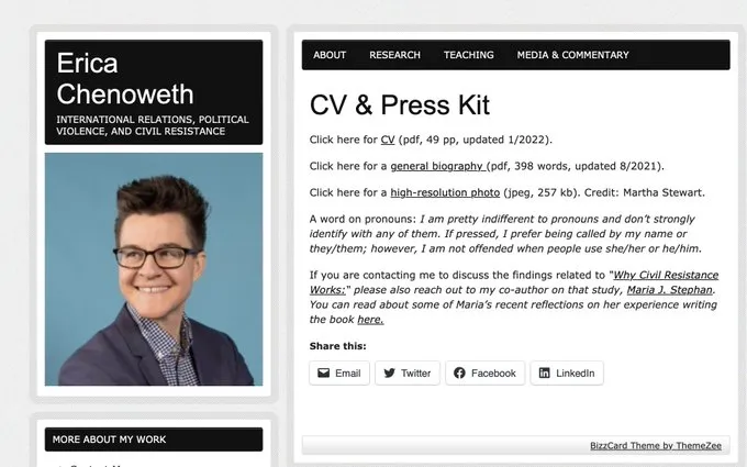 Chenoweth’s influence extends well beyond Harvard. They have spoken at Yale on the question “Is Terrorism Ever Legitimate?”, organized Harvard’s “Paths to Violence Workshop,” and hosted a “Workshop on Nonviolent Strategies in Violent Settings.”