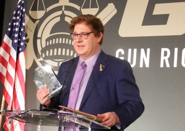 Mark W Smith with the Defender of Gun Rights of the Year for 2025 award, presented to him at GRPC 2025 in Salt Lake City.