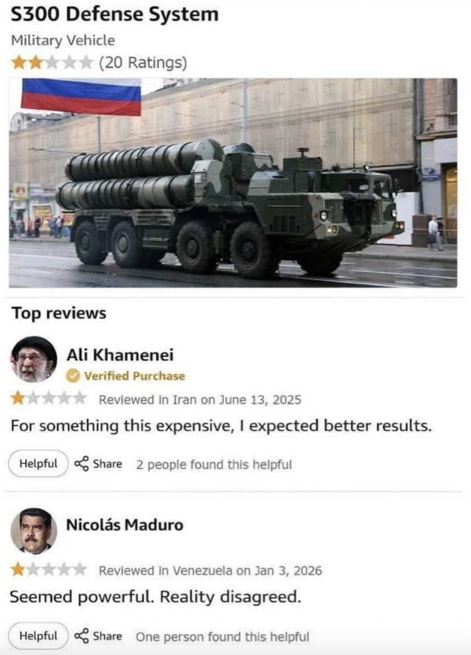 You can only blame crap soldiers so much, which it’s literally everyone who uses it fails. Iran, Venezuela, Russia itself to a lesser degree.