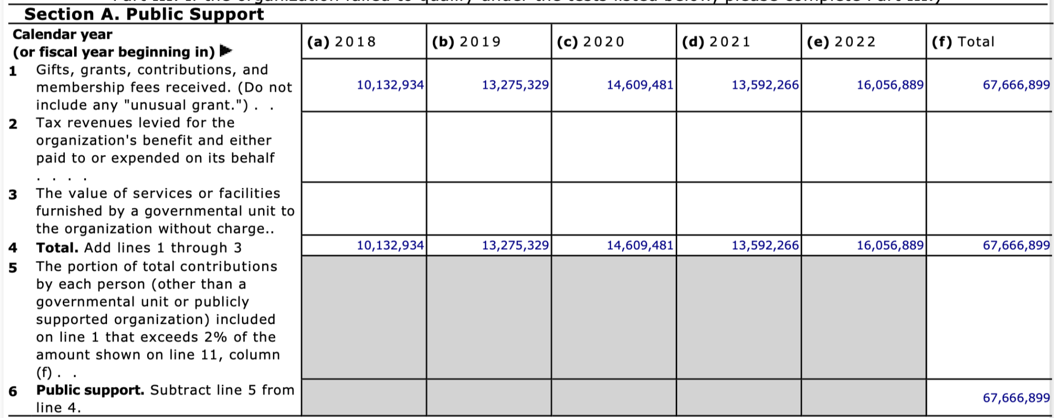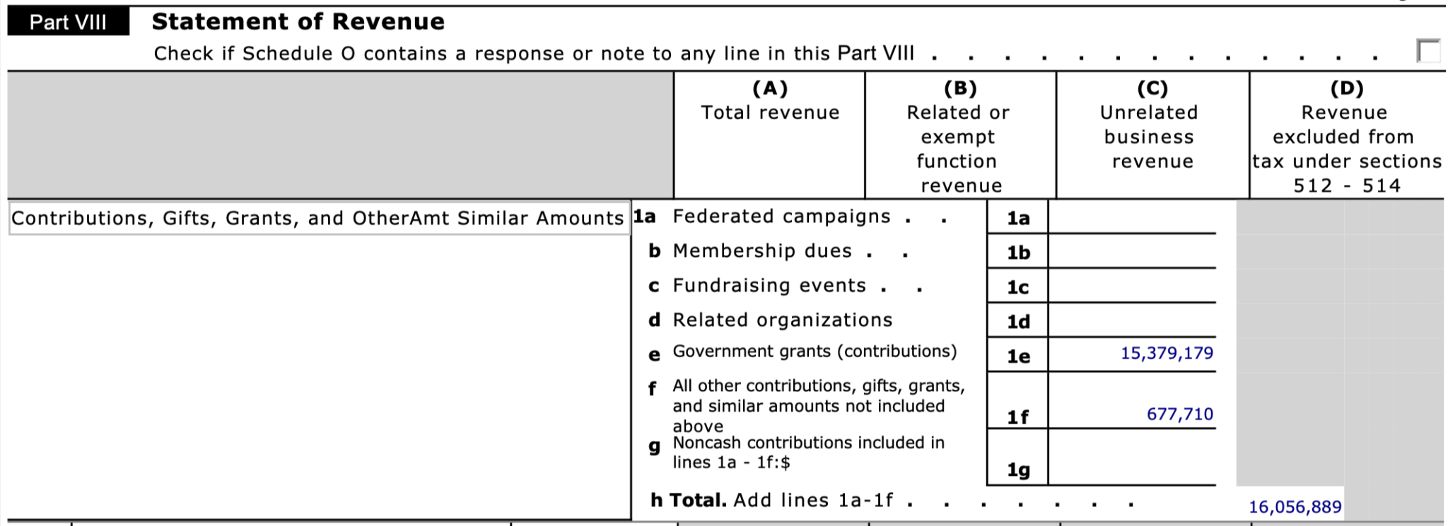 In all of those years, they only raised $677,710 from other sources. Was this USAID funding? Was this part of the $70 billion the Biden American Rescue Plan HUD funding sent around the country?