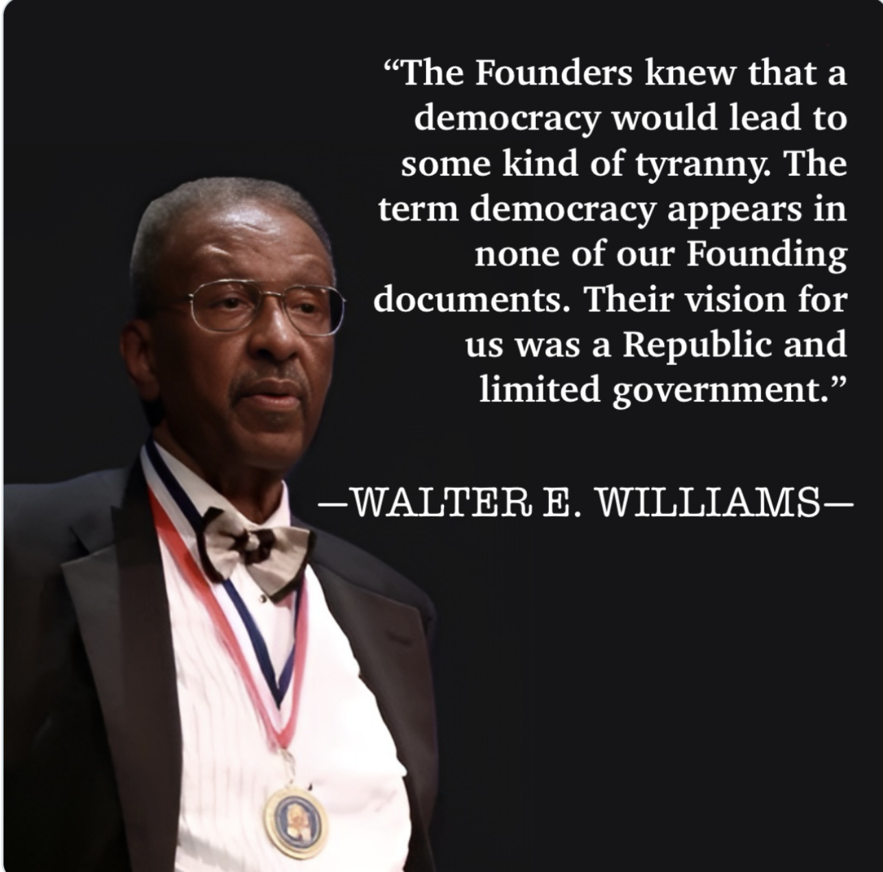 The US is a democratic republic. The party that constantly calls for “democracy” is in reality working towards the establishment of a people’s republic, a term which is a double lie: it is not a republic, and it never benefits the people.