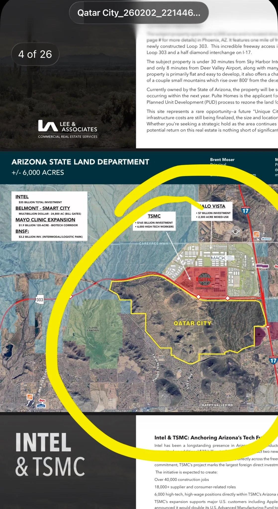 A glossy brochure labeled “Qatar City, Arizona, USA” has begun circulating online. It shows a 6,000-acre state land auction and a massive proposed development project strategically placed near Arizona’s TSMC high-tech zone. The name? Qatar City. The plan? Unclear. The funding? Opaque. The timing? Disturbing.