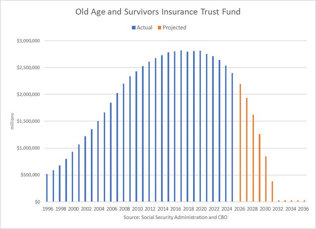 As recently as 2022, when CBO published a similar ten-year fiscal outlook, the forecast was that the Trust Fund would last until 2035.