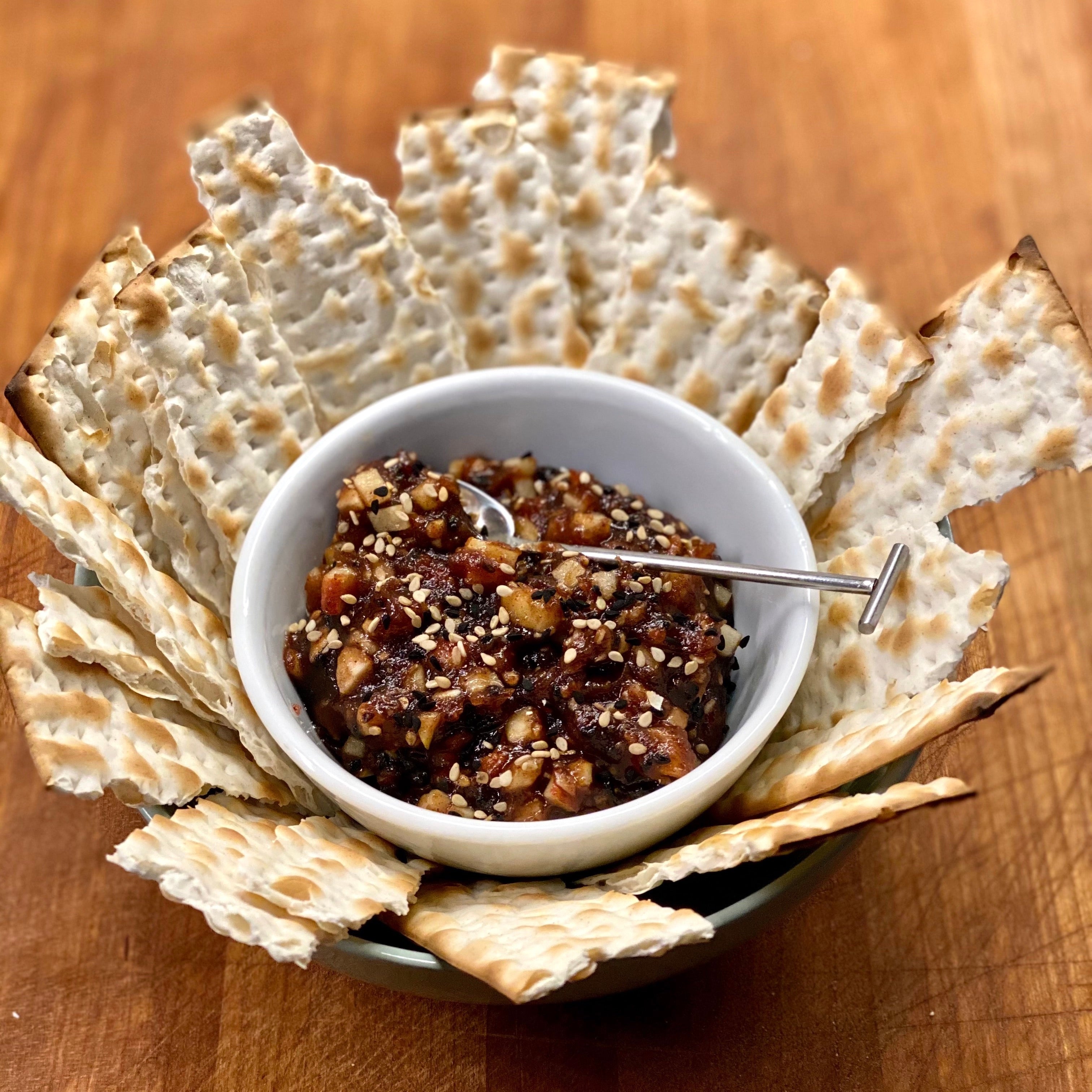 Charoset is a sweet, fruit-and-nut paste eaten during the Jewish Passover Seder to symbolize the mortar used by Israelite slaves in Egypt. - Wiki (a sweet apple mixture made with dates, nuts, and honey.)
