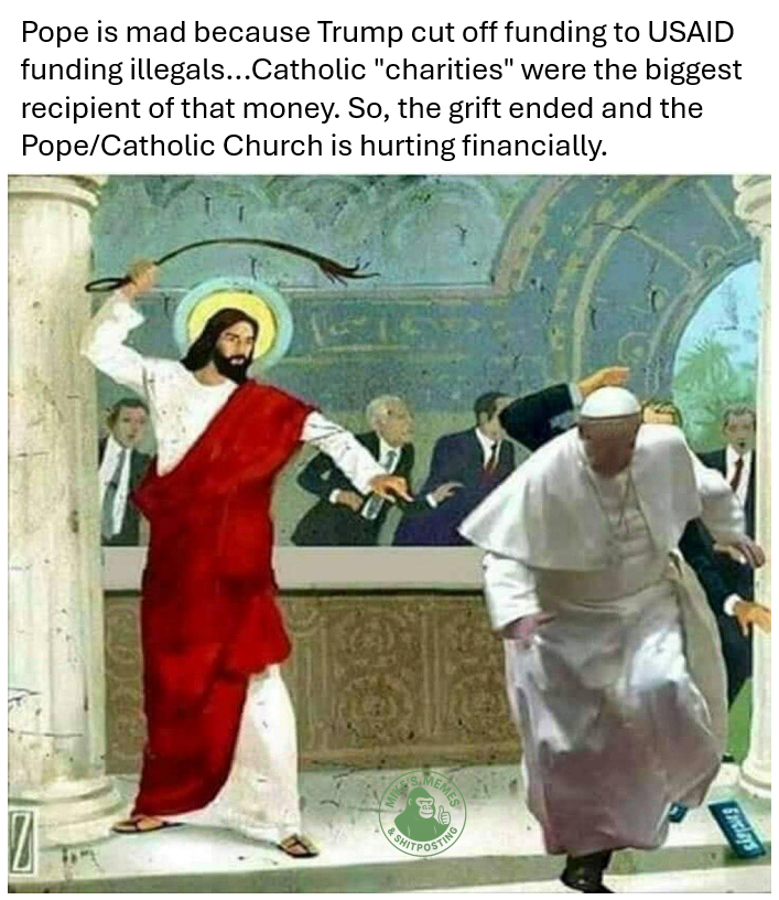 What the Catholic Church did?......assisted a demographic invasion of America by illegals, Dya think that Trump would not troll Muslim loving , socialist boys club Papita?