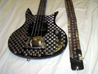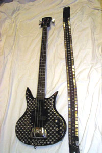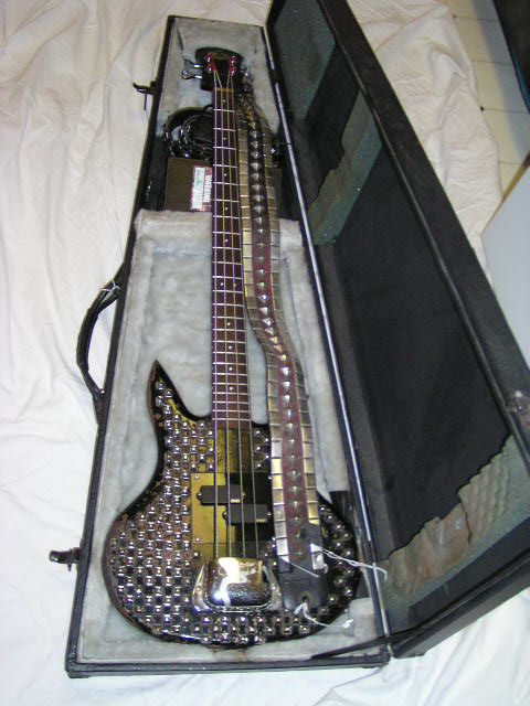 GENE SIMMONS-USED ORIGINAL CUSTOM SPECTOR BASS Click on any photo to the right to view a larger image Up for auction is THE one and only original Gene Simmons custom design Spector electric bass finished in a silver and black pyramid design used originally in the Love Gun/Alive II tours. This bass was purchased at the Kiss Butterfield's Auctioneers and Greg Manning Auctions, Inc. June 24 and 25, 2000 auction [lot 1126.] Hand-signed in person backstage by Gene (see photo for proof.)