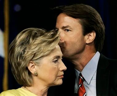 Edwards: "Listen Hillary, we're going to go into this campaign as equals, and...OOOWW!"