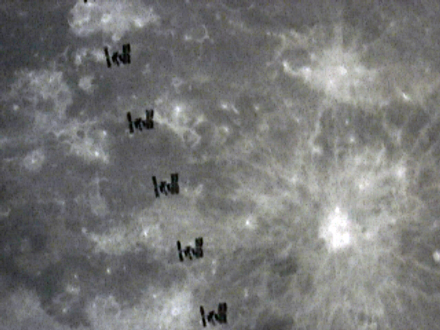 "The International Space Station (ISS) transited the Moon at 3:38 China Standard Time," says Xin Li of the Beijing Planetarium. "We photographed the event using a Meade 8" LX200 and a ToUCam video camera." The flyby occurred not long after the space shuttle docked with the ISS, so there are actually two spacecraft in the picture. Can you find Endeavour?