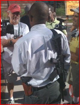 That's my thought on this. He was surrounded by leftist SEIU thugs, and that rifle looks pretty shiny and new. If we start seeing more anti-gun stuff across the MSM spectrum, esp. about "assault weapons," bet your last dollar that guy is/was a plant to bring attention to the fact that firearms can be brought so close to the President. The fact this guy was openly carrying indicates, to me anyway, that he had no designs on assassination. He was simply exercising a right guaranteed by the Bill of Rights.