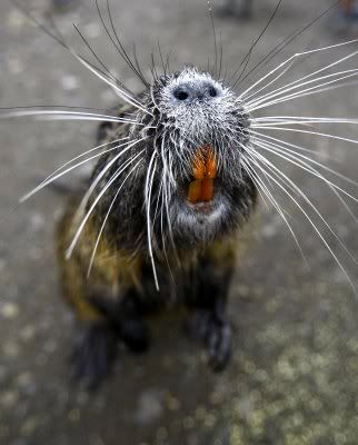 "LOL, nutria, an easily enraged rodent that looks like a mix between a dispeptic guinea pig and a gerbil with a bad hair day.