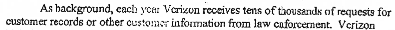 "Cricket doesn't have as many subscribers so our numbers are going to be less. I think we have 4.5 - 5 million subscribers. We get approximately 200 requests per calendar day, and that includes requests for records, intercepts. We don't have the type of automation they do, and we can't do the location specificy that they can, because we don't have GPS."