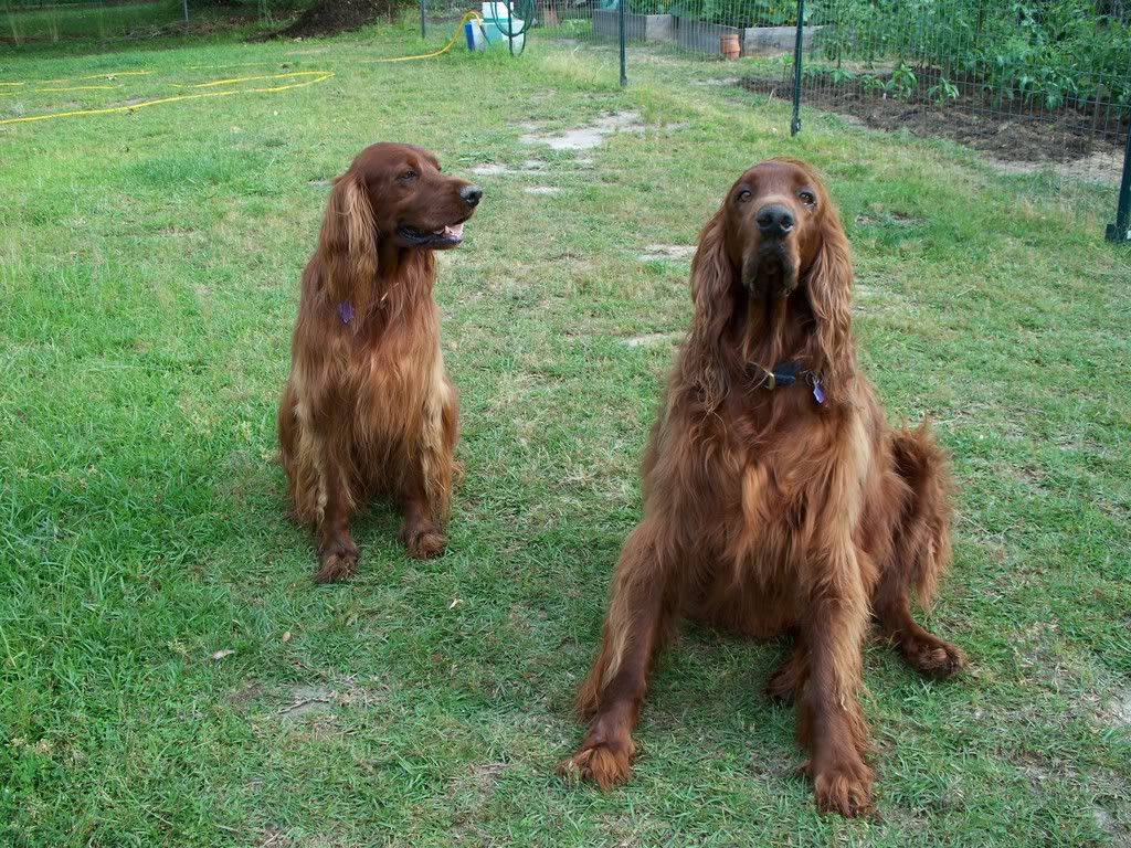 Cashmere and Aladdin (Irish Setters) Guarding The Garden