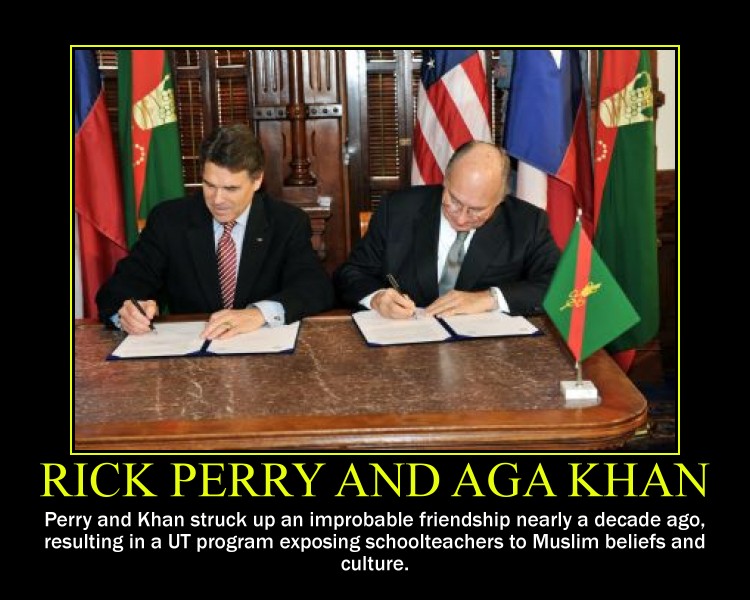 In April 2004, the Aga Khan Foundation (AKF) and Univ of Texas-Austin finalized a grant proposal that created the partnership that became known as the Muslim Histories and Cultures Program (MHC). MHC recruited and directly trained 80 teachers affecting approximately 15,150 students of World History and World Geography in ten key Texas districts in 2005 and 2006. The purpose is two-fold 1) to fulfill Governor Rick Perrys desire to better educate Texas teachers on Muslim topics and 2) to train teachers to use a cultural lens approach to understanding other cultures. Governor Perry was instrumental in getting this program off the ground.