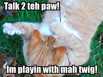 Not my cat, just one that was captioned at I can haz cheeseburger.