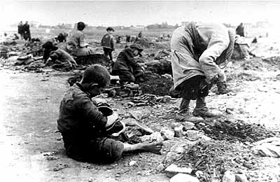 Here, young children and elderly Jews from the ghetto forage for bits of coal.