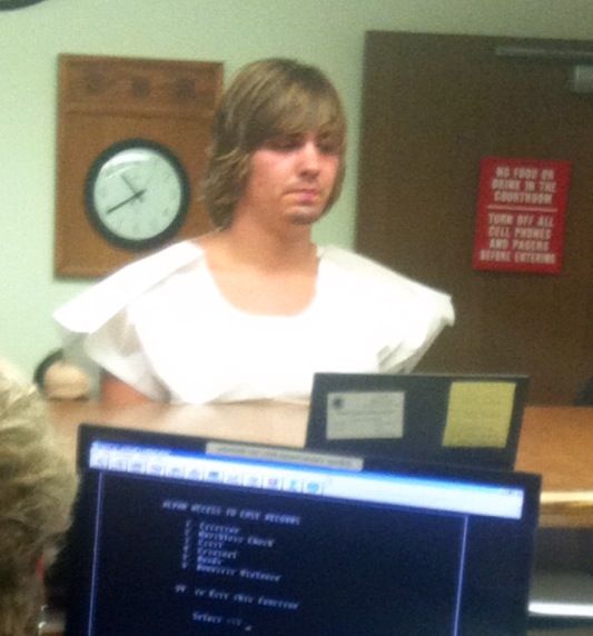 I see he was issued a shiny new jail-house shirt to wear, drunks never get arrested with their shirts on, it seems.