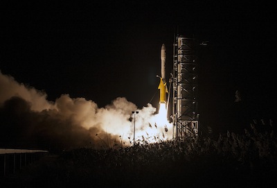 Explanation: Star trails arc above a moonlit beach and jetty in this serene sea and night skyscape. Captured on November 19, the single time exposure looks south down the Atlantic coast from Cape Cod, Massachusetts, USA. But the longest and brightest trail is a Minotaur 1 rocket, a stage separation and exhaust plume visible along the rocket's fiery path toward low Earth orbit. The multi-stage Minotaur was launched from the Mid-Atlantic Regional Spaceport at NASA's Wallops Flight Facility at 8:15 pm Eastern Time in Virginia, about 400 miles away. On board were a remarkable 29 satellites destined for low Earth orbit, including a small cubesat built by high school students, and Firefly.