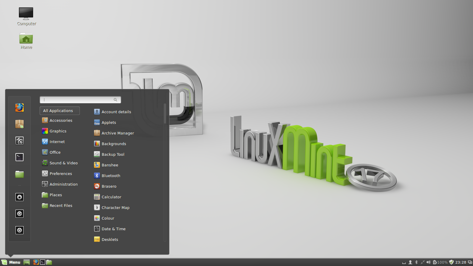 The software available in Linux Mint is perfect for the average user with the LibreOffice suite, GIMP image editor, Banshee audio player and VLC video player.