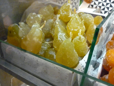 The smaller pears are available in produce sections at certain times of the year. Still....I believe I have seen canned whole pears in some imported specialty food shops. Perhaps these are the smaller pears the French confectioners use.