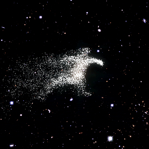 The gas was blown across space by powerful galactic winds streams of high-speed charged particles over periods of several billion years.