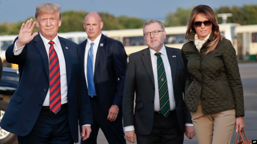Melania Trump showcased three incredible outfits throughout her second day in the UK, including a striped dress by British designer Victoria Beckham in the morning and a British Burberry jacket as part of her final look ready for her arrival in Scotland with her husband.