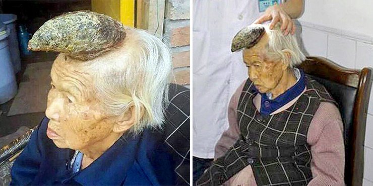 The result is a hook or hornlike feature jutting out from the skull, just above the neck.