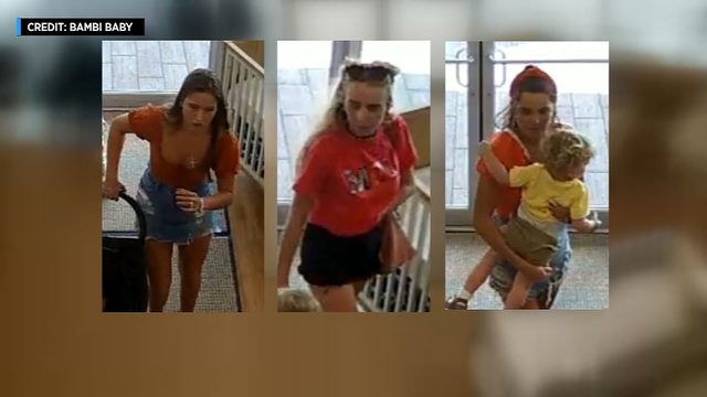 One of the women spent several minutes attempting to collapse a stroller before leaving with it, but she accidentally left behind the one thing she came in with: a child.