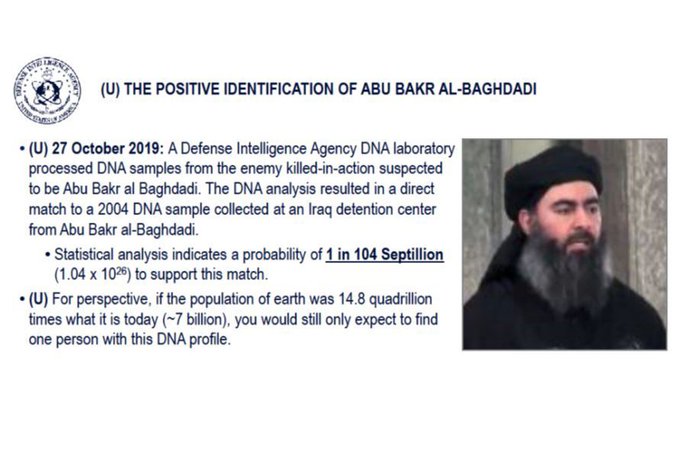 "After Baghdadi's murder-suicide, our assault force cleared significant debris from the tunnel and secured Baghdadi's remains for DNA identity confirmation..." - Gen Frank McKenzie CDR USCENTCOM