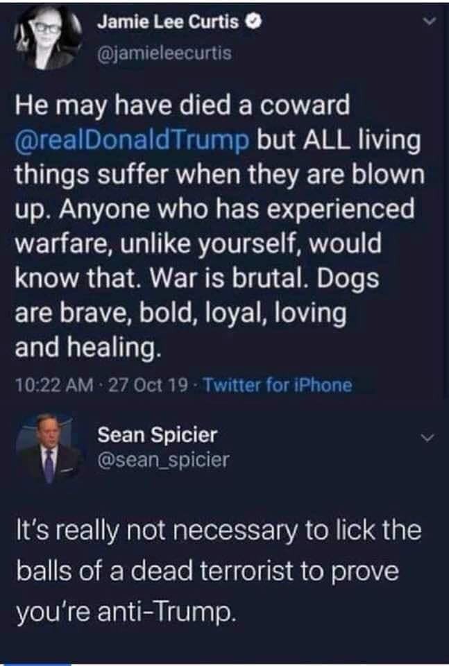 The anti-Trump Hollywood star came under fire recently for a now-deleted tweet in which she defended Islamic State leader Abu Bakr al-Baghdadi after he was killed