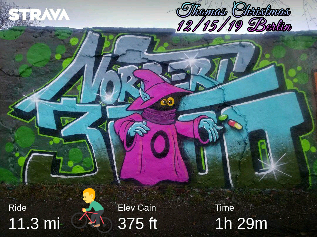 My stupid weather app said cloudy with chance of rain in the afternoon (actually sun-showers). But when I got out of the front door there was light drizzle and hail. So I only rode to the graffiti wall and back. Glad I did because my favorite street artist put up two new pieces: