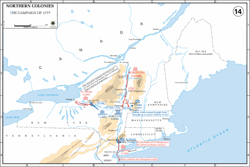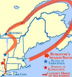 In June of 1777, British General "Gentleman Johnny" Burgoyne was marching from Quebec, Canada toward Albany, New York, with an army of 7,000 British and Hessian troops.