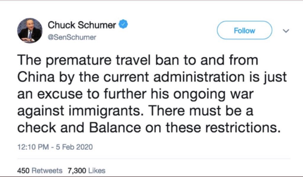 Watching the news programs and social media today, there is very much a movement afoot to pin Coronavirus on President Trump and use it to try to sink his reelection. They’re cheerleading the stock-market dive because the run-up has been something the president has bragged about. They’re rooting for a pandemic with the idea that voters will turn to them in November. It’s insanity, of course. No voter with a brain could think that the party of open-borders and illegal immigration would somehow be handling this better, but, hey, you run with what you got. They smell blood in the water and they’re trying to take advantage of it.