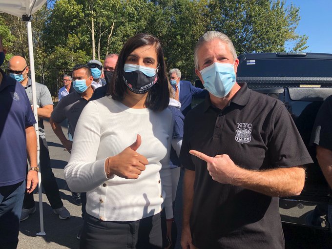 Thank you @NYCPBA President Pat Lynch for coming to #StatenIsland for our Triumph 2020 Rally. As was evident by the 2500+ people in the crowd...our community wants law & order restored, the NYPD supported, the American Dream preserved & socialism STOPPED. 🇺🇸 pic.twitter.com/Rp4KfbPZkV— Nicole Malliotakis (@NMalliotakis) October 3, 2020