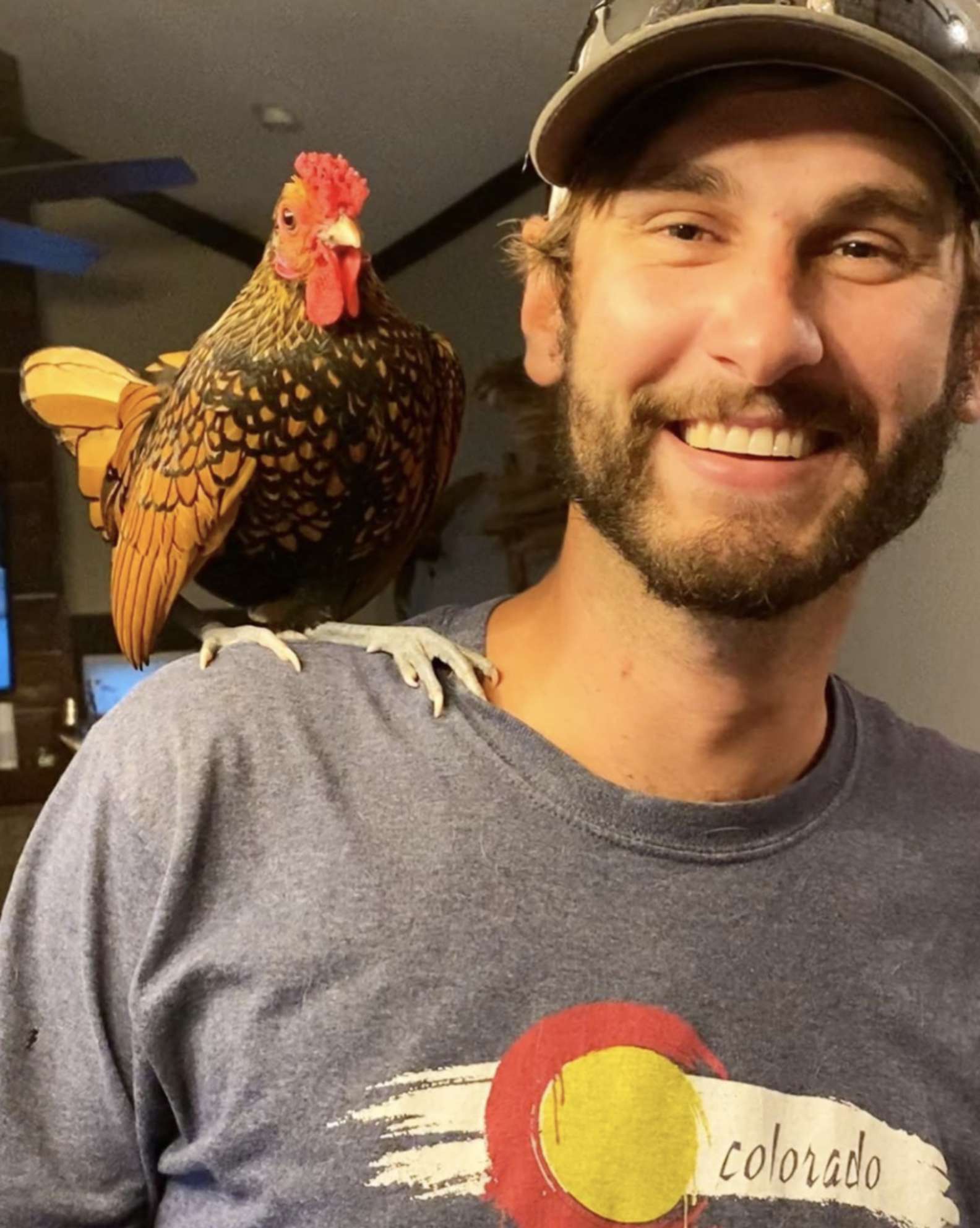 I instantly fell in love with him, Sanders said. Ive grown up around animals but never had any type of birds/chickens. He follows us around like a dog and loves attention. The first few days he kept his distance and wouldnt let us touch him but after he came in the house he warmed up, no problem. He basically took over and now does whatever he wants.