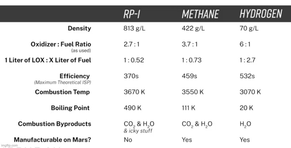 These were the options on the type of engines SpaceX could have used for the Raptor engine. SpaceX chose to go with full flow staged combustion cycle engine, the engine in the last column.