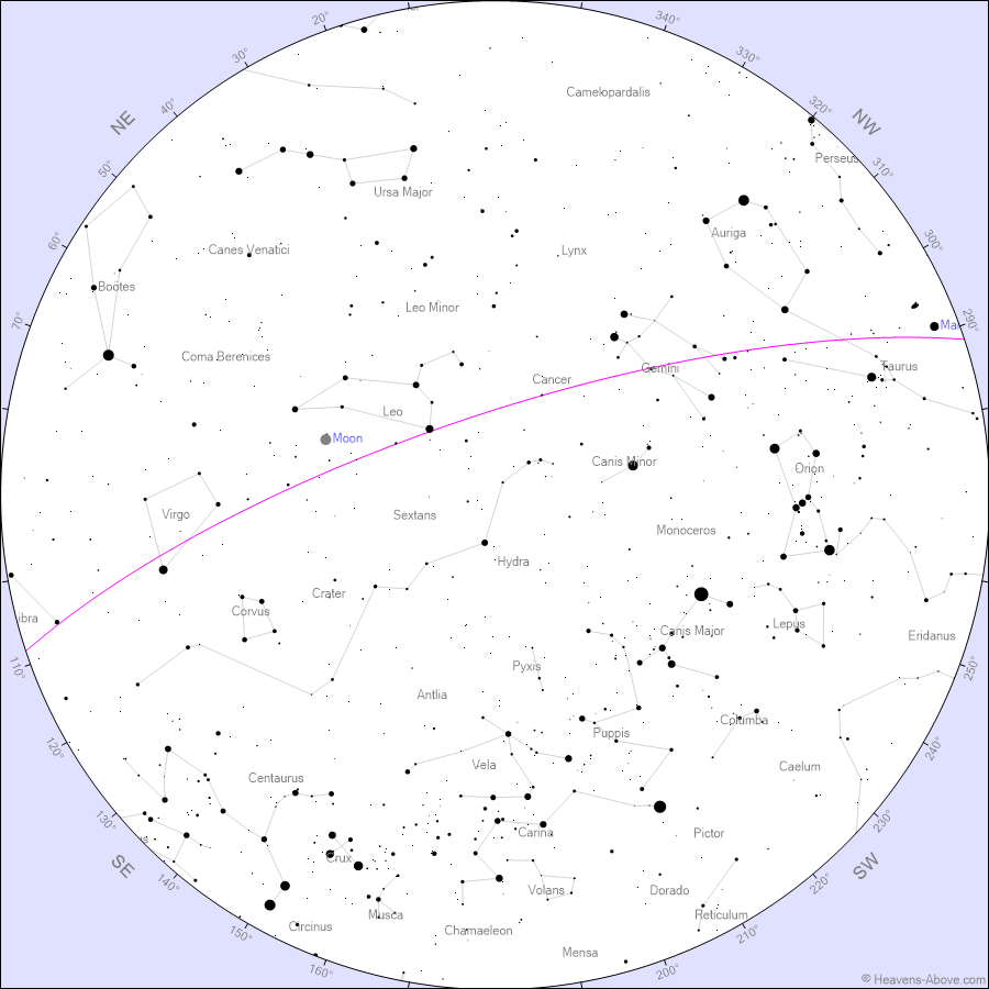 Mars, currently the only planet in the night sky...
